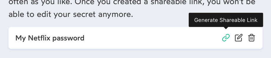 To do that, simple click / tap the link icon and your draft will become a shareable secret.